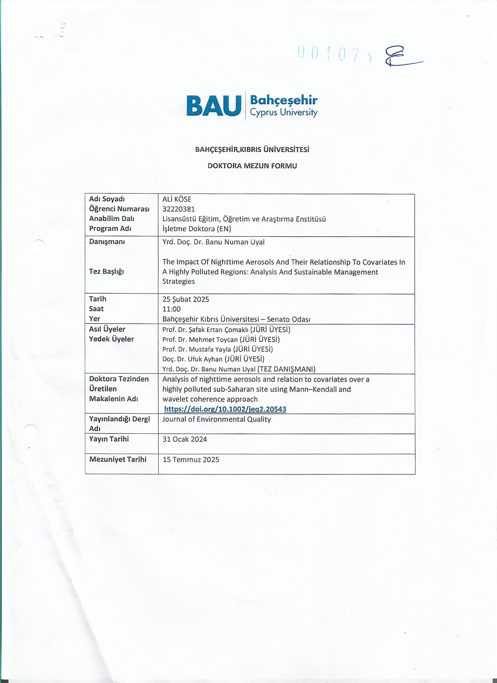 Doktora Mezuniyet Bilgileri